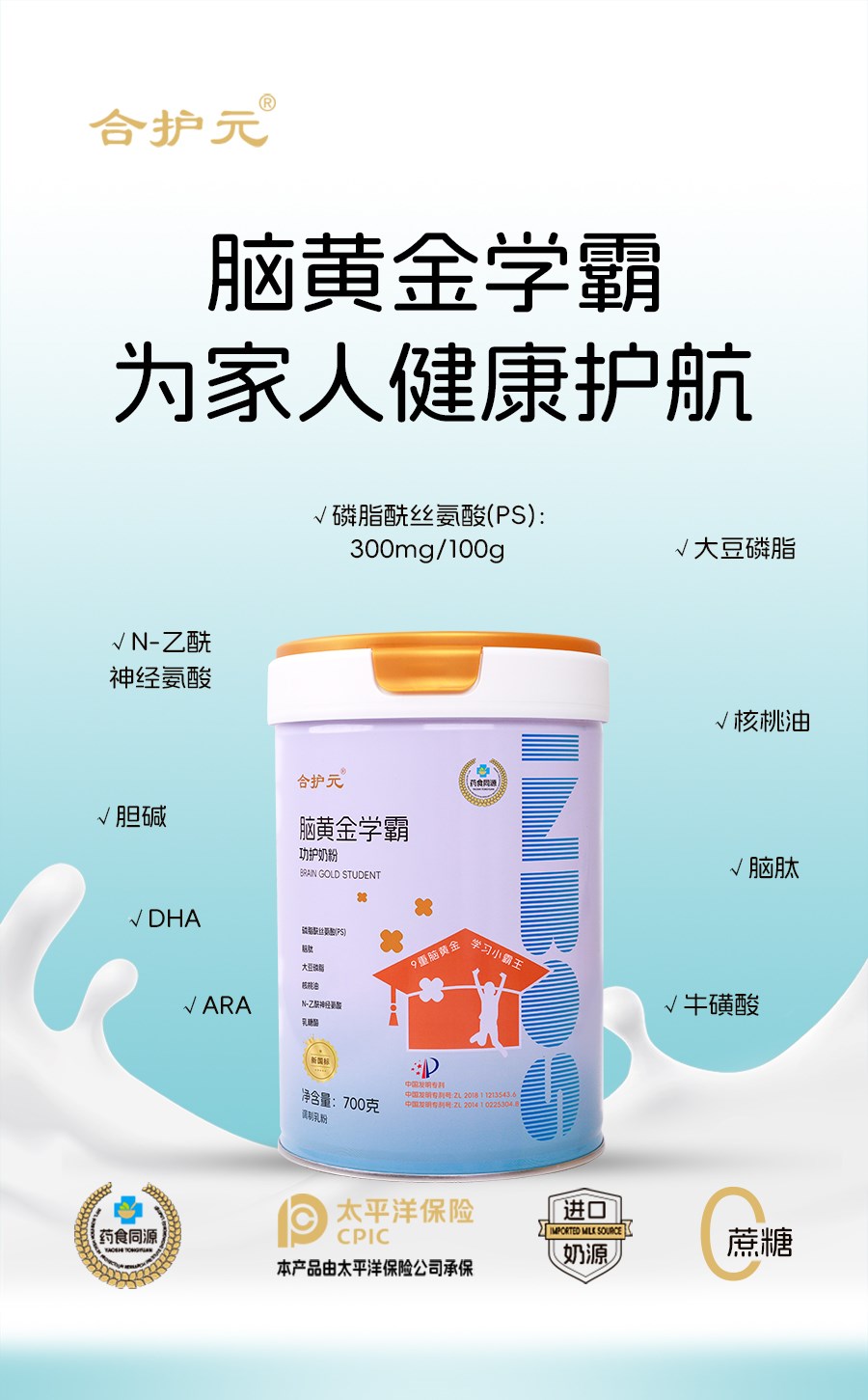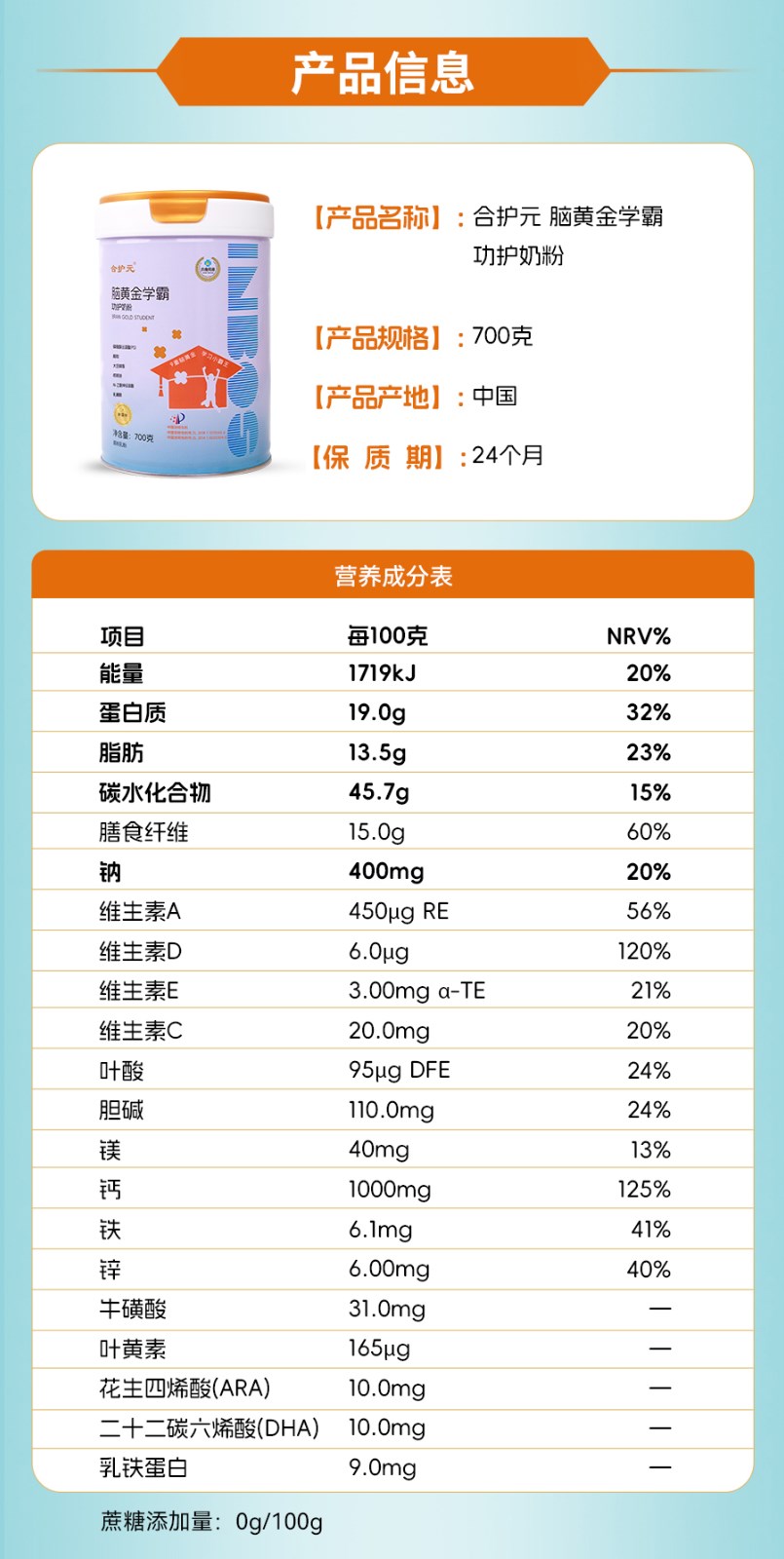 合护元脑黄金学霸功护奶粉